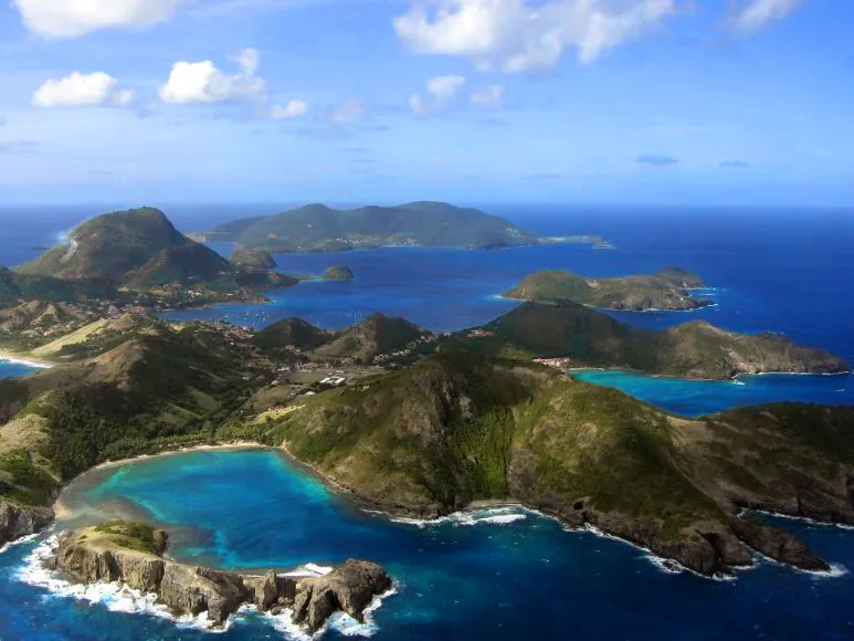 Comme la Basse-Terre, l’archipel des Saintes est issu de même chaîne volcanique. 9 îles arides et escarpées. Si on compte les cailloux… Les deux plus grandes îles sont les seules habitées. Terre-de-Haut, un îlet allongé de 5 km2 à l’est, et Terre-de-Bas, l’îlet le plus grand de 8 km2 à l’ouest de l’archipel et de forme plus arrondie.